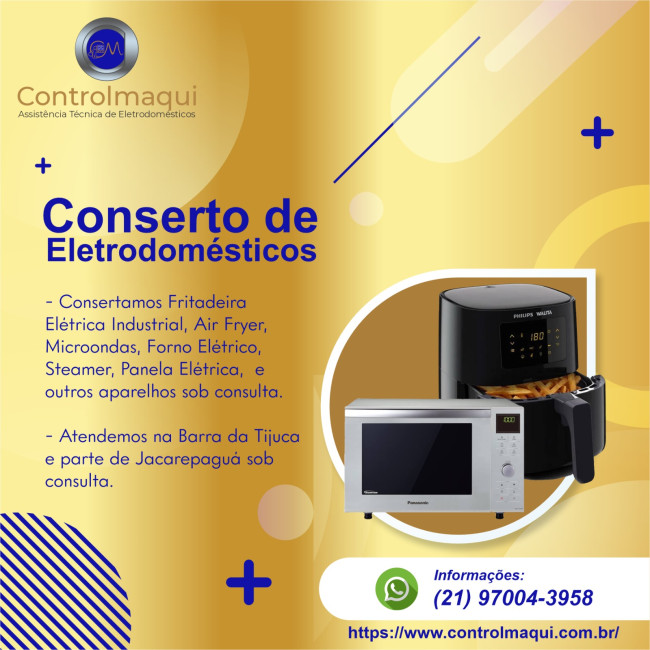 Conserto de Eletrodomésticos no Rio de Janeiro - RJ Fritadeira Elétrica Industrial, Fritadeira Air Fryer, Forno Airfryer, Forno Microondas, Forno Elétrico, Passadeira a Vapor, Steamer, Outros aparelhos sob consulta.